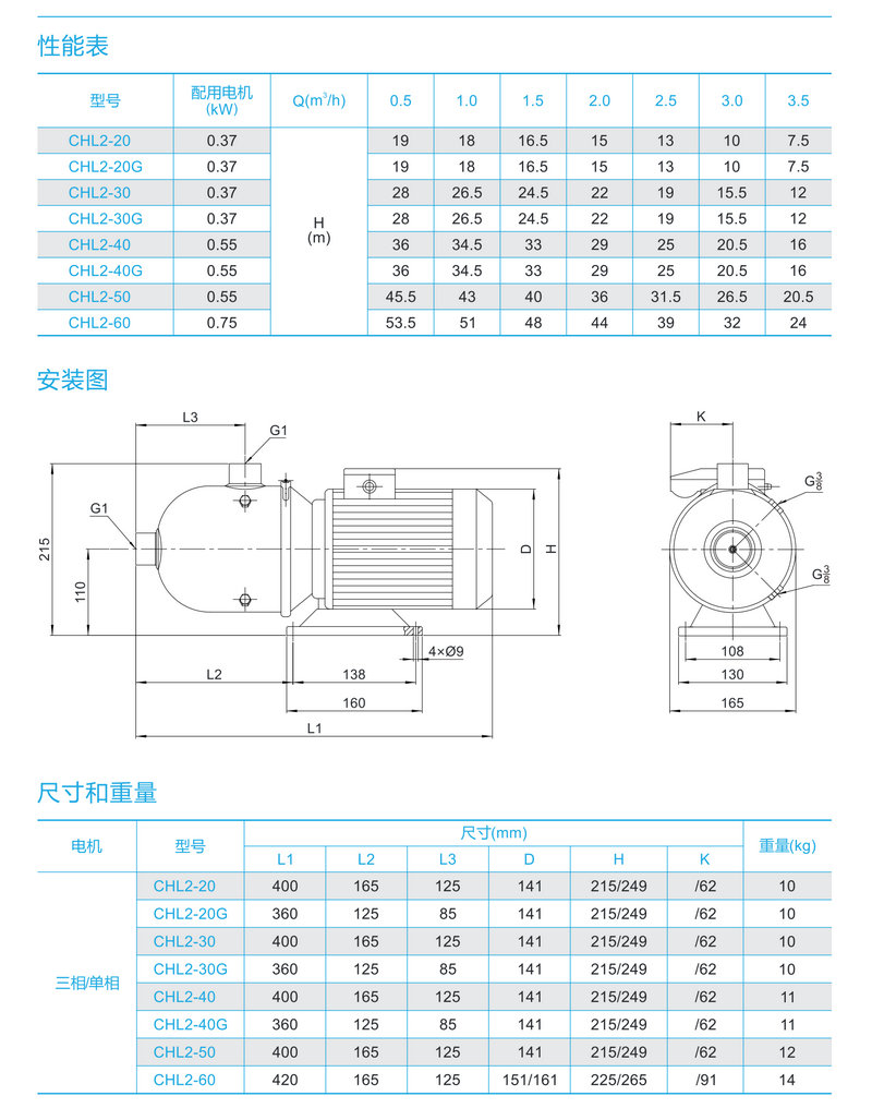 【南方】臥式不銹鋼多級離心泵CHL2-10/20/30/40/50/60