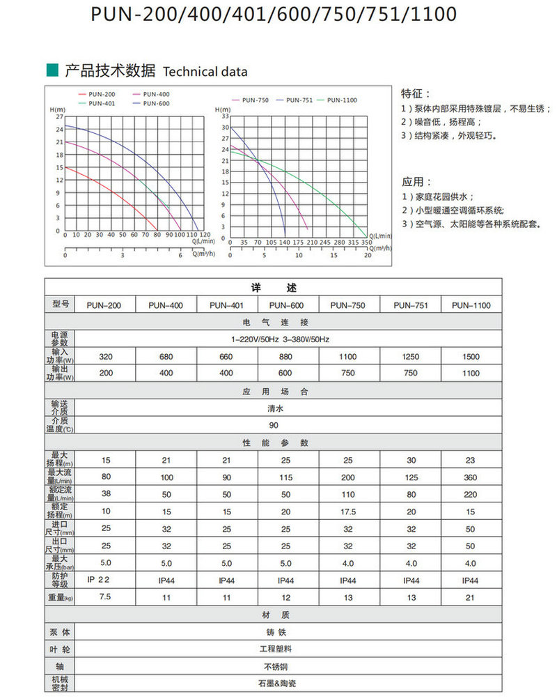 特征:1)泵體內部采用特殊鍍層,不易生銹;2)噪音低,揚程高;3)結構緊湊,外觀輕巧。